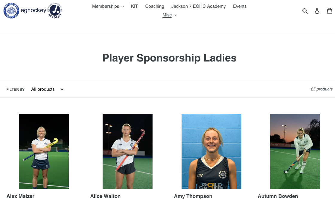 We would love our players to be personally connected to local businesses and supportive friends and members through this Player Sponsorship Programme. All proceeds are directed towards our performance programme and to helping them maintain EG's position in the "top flight" and the opportunities that presents.