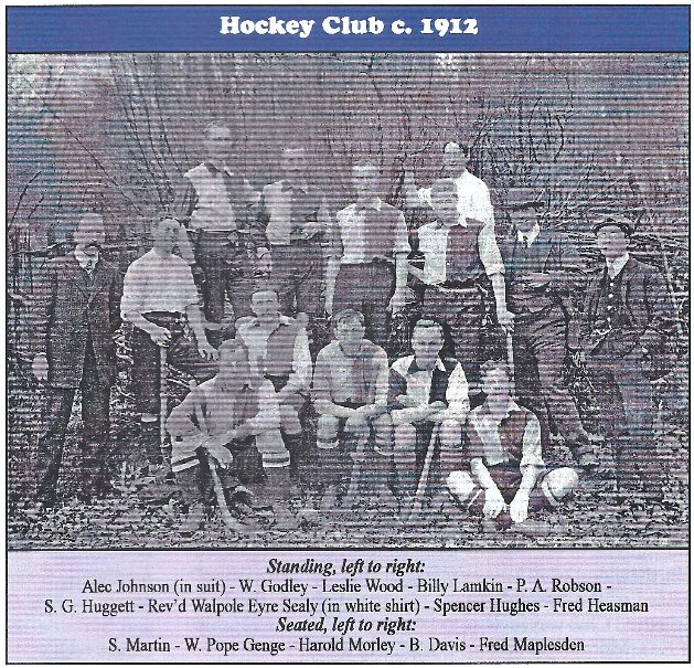 Owing to the heavy rain during the night the ground was nothing but a quagmire and East Grinstead would have done well to scratch. This extract is from the edition of"Hockey" published on PLAYERS at this time laments the quality of many grounds and emphasises how essential the improvement of pitch quality is to the development of skills of the game. The same journal in the following year claims there are about 600 clubs in existence. This statement is made in the context of an appeal to raise €75 "to enable the Hockey Association to entertain their visitors in a manner benefiting this occasion". The occasion was no less than the entertainment of the Olympic Games Hockey teams! A contributionof 2/ 6 (15p) per club was suggested! Until the Club procured the use of the West Street Cricket Ground for the 1909-1910 season, the Dorman's Park ground continued to be used for home games. During the period 1903-1910 the Club captains were Spen- cer Hughes and P.A. Robson and the President was Edward Blount. Club officersand committee members were Blake, Genge, Heasman, Hooper, Moore, Smith and White (no ini- tials given!) and other playersinclude Dahl, Dendy, Gardner, Gordon, Lamkin, Maplesden, Matson, Mead, Moreley, Pearless, Rowan, Stenning, Tyler, Vavasour, Walford and Winsel. Spencer Hughes and Hooper were selected for the County in 1905. The teams played included Hastings, Royal Sussex Regiment, Malden, Brighton, Seaford, Redhill, Horsham, Haywards Heath, Lowfield Heath, Frant and Tulse Hill. Leading clubs in the game at this time were Hounslow, described as "not far from being the best southern club", Southgate, Staines and Hampstead. Many other familiar names such as Blackheath, Bromley, Richmond, Spencer and Surbiton appeared regularly in the results columns. Others such as Brondesbury, a club from the Worcester Park area who regularly ran five sides, GWR (Great Western Railway), War Office and Norwood (three sides) have long since disappeared. Very few match reports have been found for the period 1910- 1915 althoughthe Hockey World article stated that "in 1910 ..... good fixtures were obtained, including Beckenham First XI, over whom asensational victory of 1-0 was registered." F. Heasman and F.C. Maplesden w e r ejoint Hon. Secs in 1911-1912 and on April 13th a concert was held at the Whitehall forHockey Clubfunds. No indication was given of the amount of money raised! Rev. W.E. Sealy, who appears in the photographon page 5, was assistant master and later Headmaster at Fonthill School from 1908, certainly until 1943 and possibly until the late 1940's. P.A. Robson remained Captain until the Club suspended play in 1916 at which time C.J. Tree of Fonthill School was Hon. Secretary.