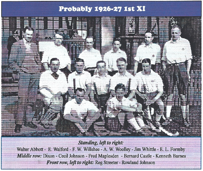 R.H. Wood (2nd XI Captain four years), H.K. Barnes, H.E. Bawden, A.G. Heasman, F.C. Maplesden, R. Place (father of subsequent President Geoff), J.H. Blaine,